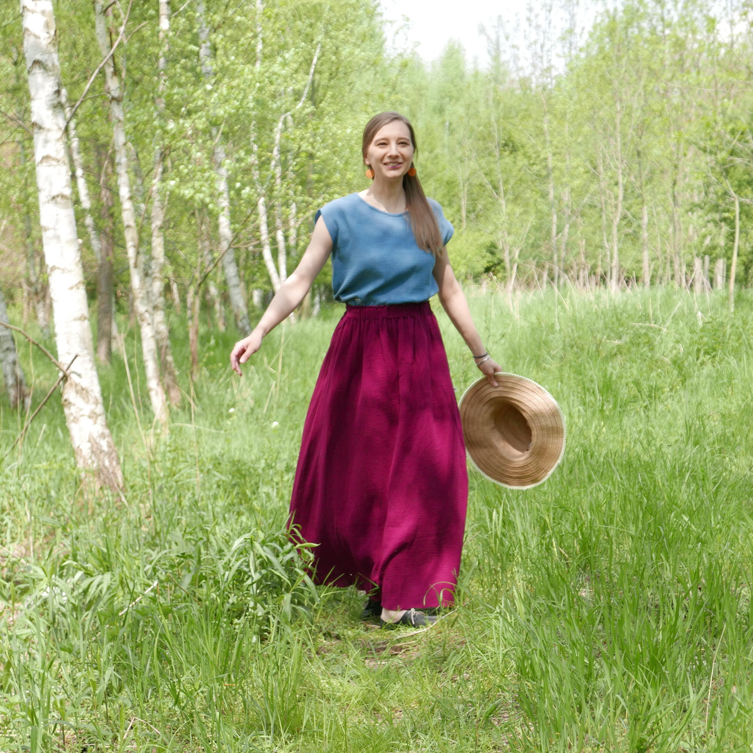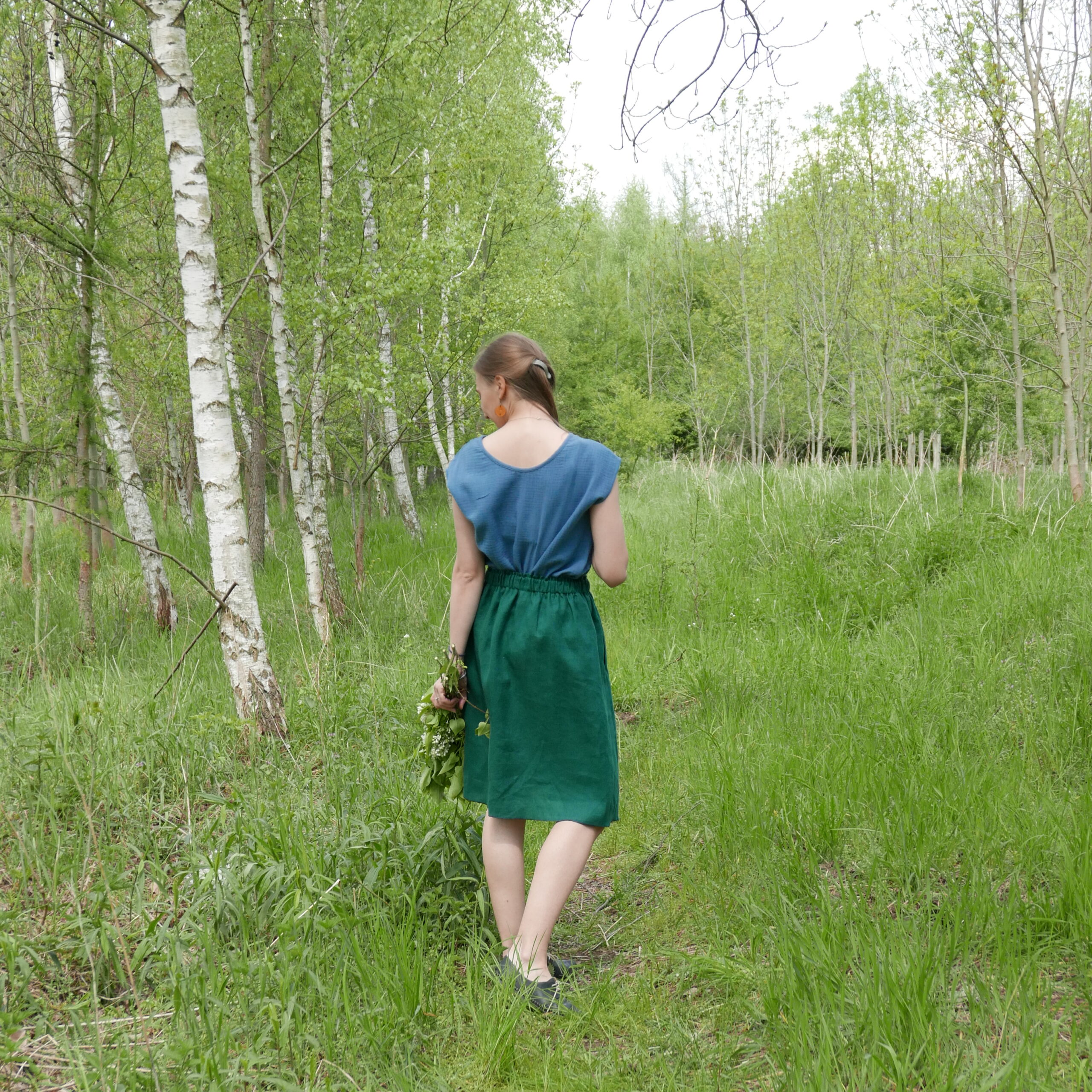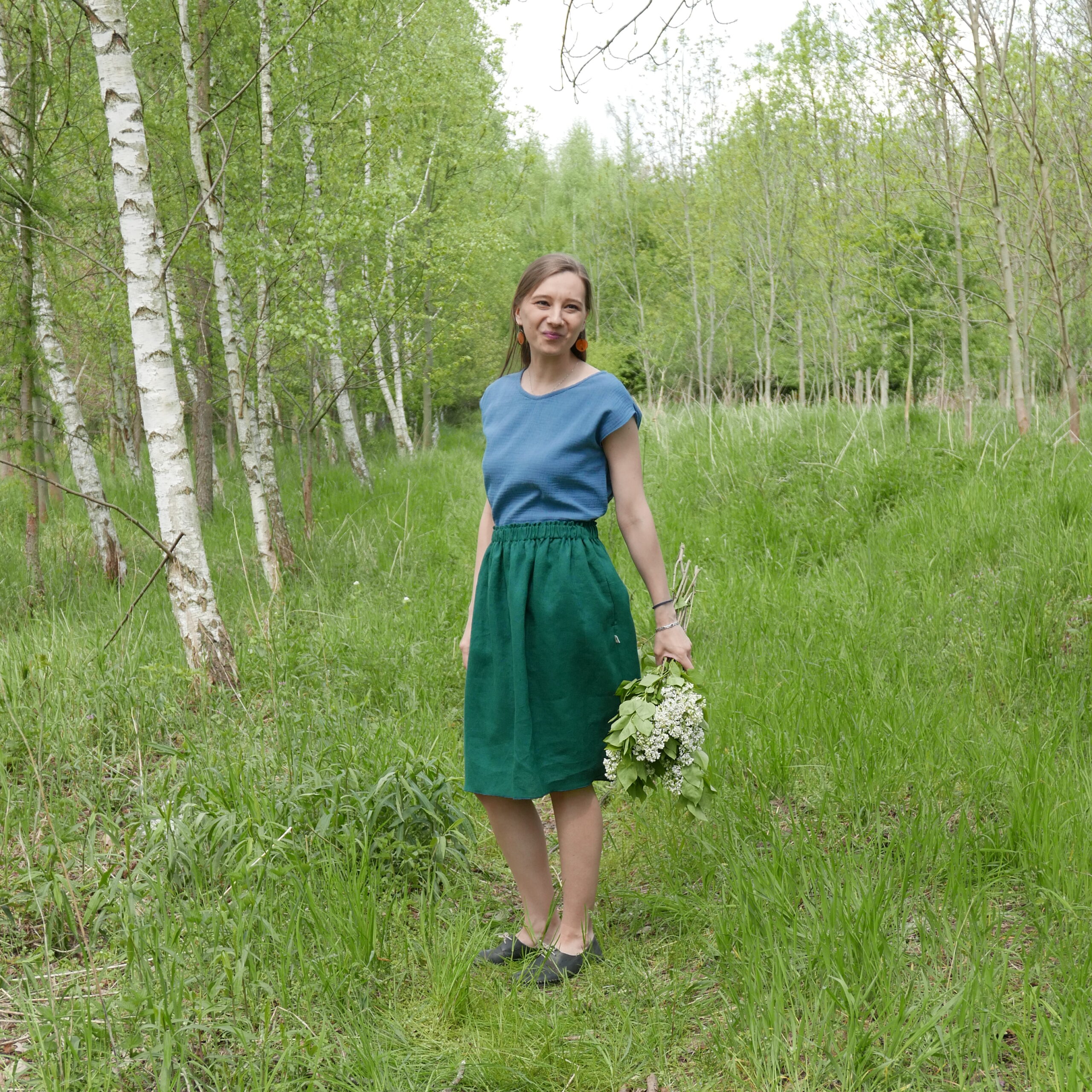 Po praniu materiał dobrze jest delikatnie naciągnąć, by trzymał strukturę. Nie wymaga prasowania, choć niektórzy wolą. Można wówczas prasować w średniej temperaturze.