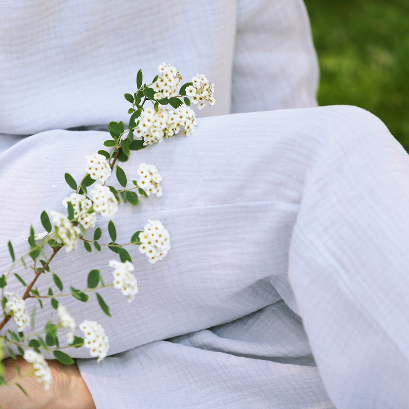 Po praniu materiał dobrze jest delikatnie naciągnąć, by trzymał strukturę. Nie wymaga prasowania, choć niektórzy wolą. Można wówczas prasować w średniej temperaturze.
