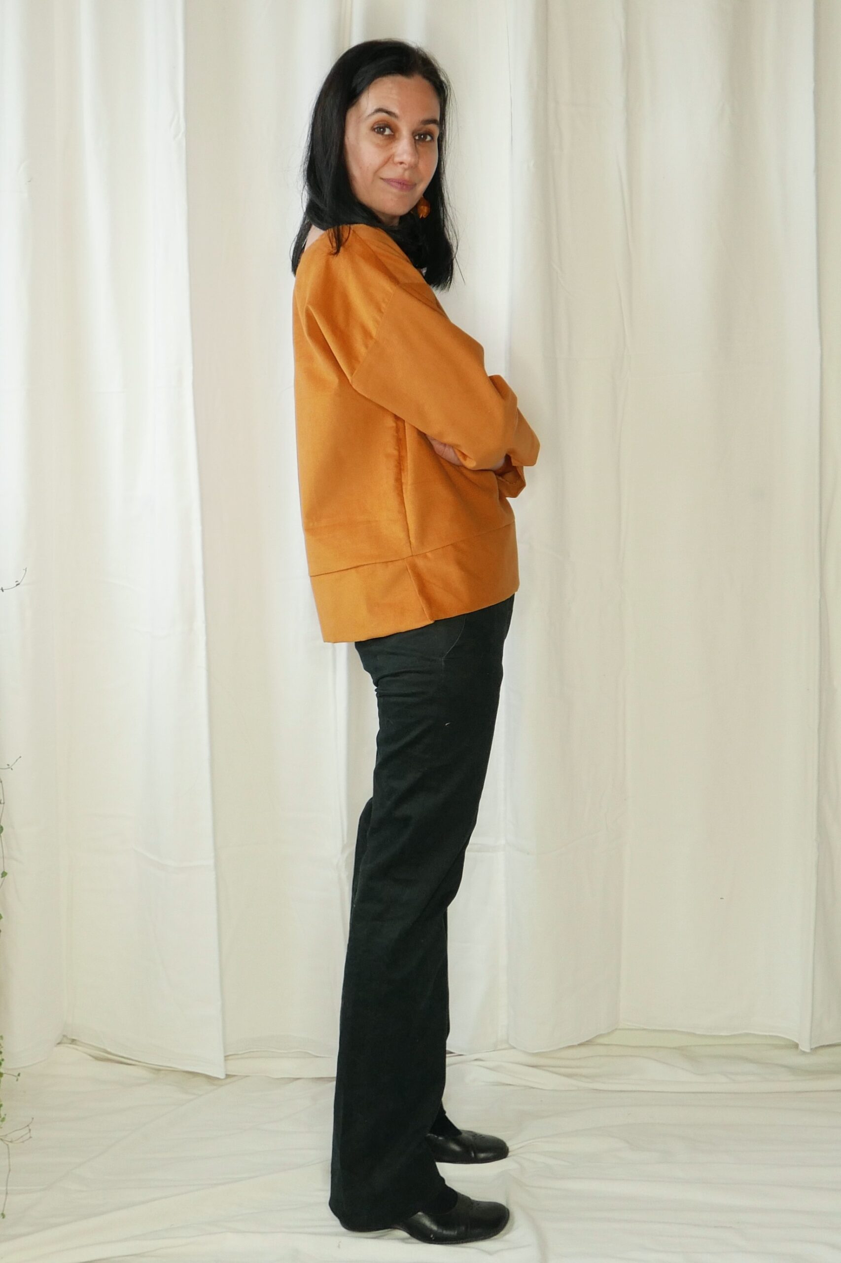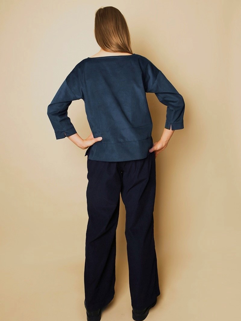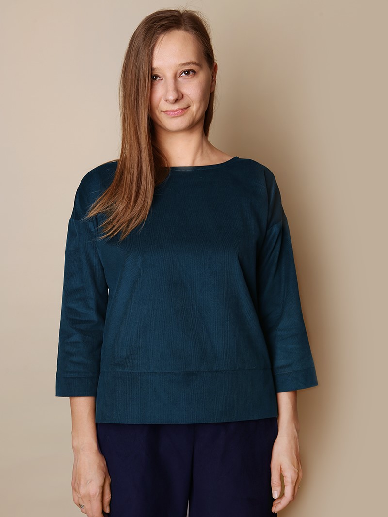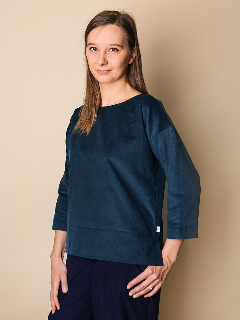 Szyjemy ją z bawełnianego sztruksu w drobny prążek, który przyjemnie otula i zadziwi Cię swoją miękkością. Dzięki niemu bluza jest delikatna w dotyku i świetnie się układa.
