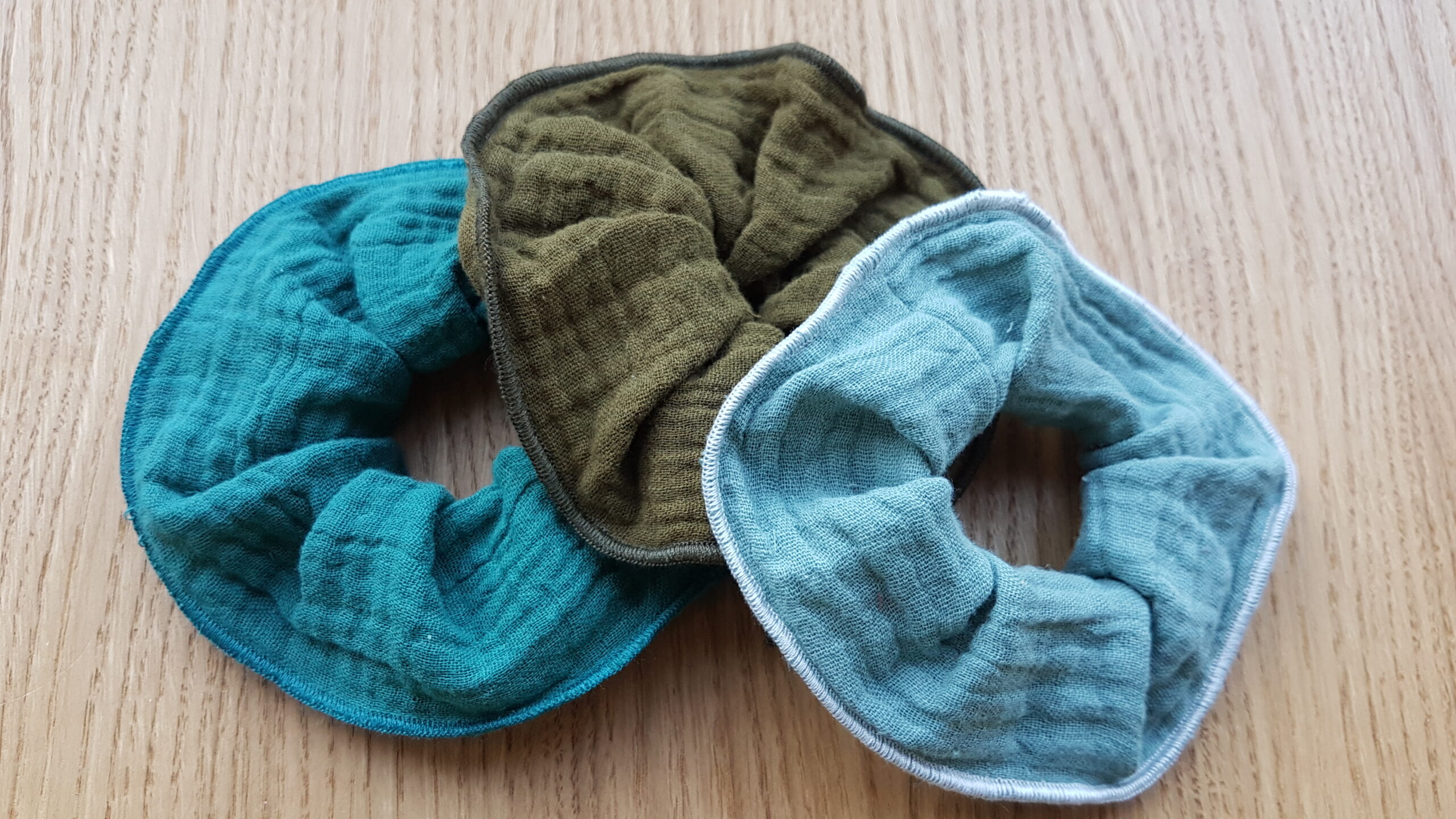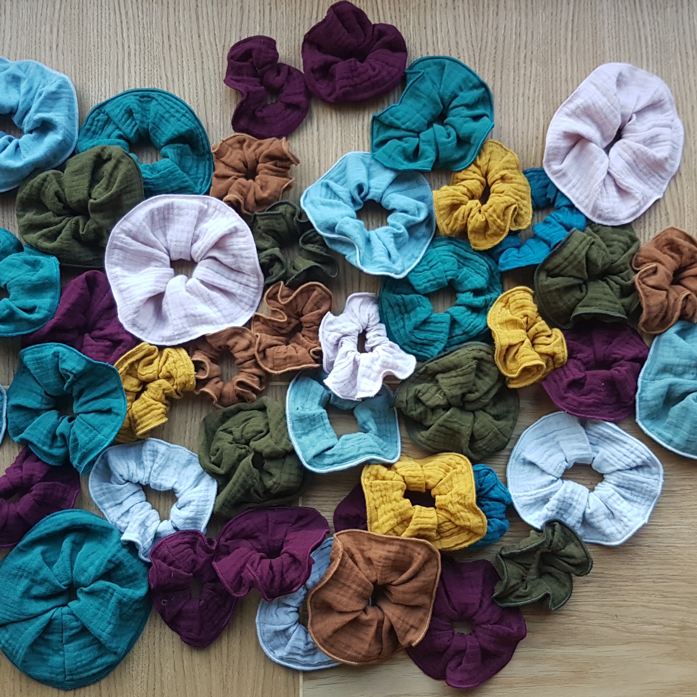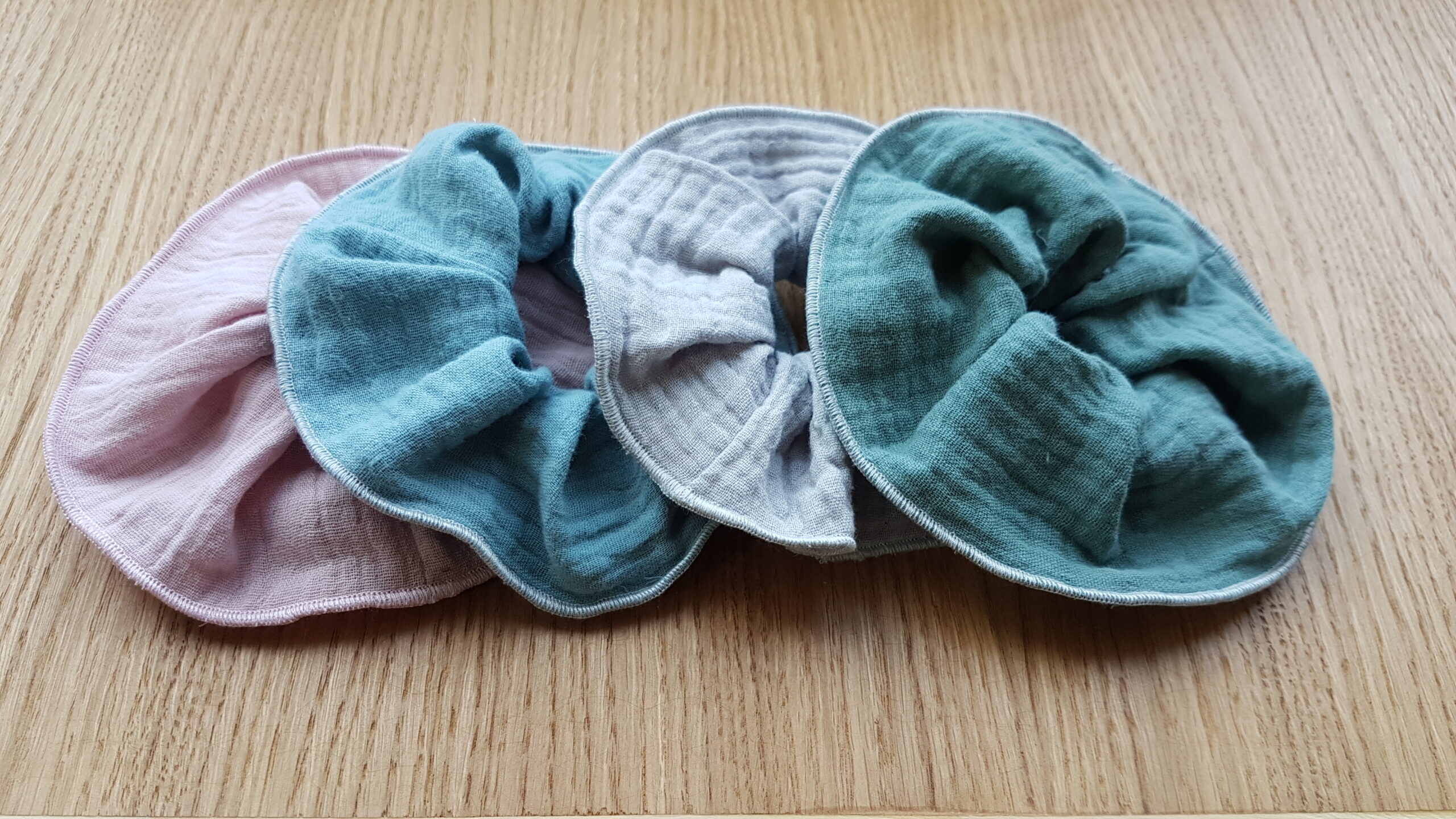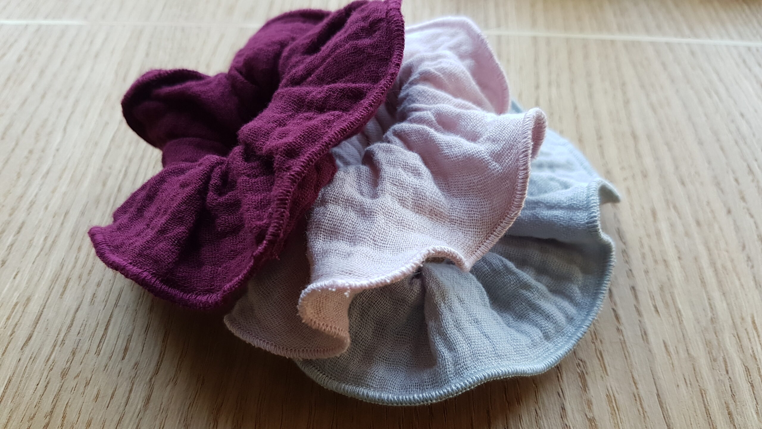 Gumki powstają z naturalnej 100% bawełny, delikatnej i mięciutkiej o karbowanej, gniecionej fakturze. Bardzo przyjemnej w dotyku. Gumki mają delikatne frędzelki oraz pogrubione brzegi, które lekko falują.