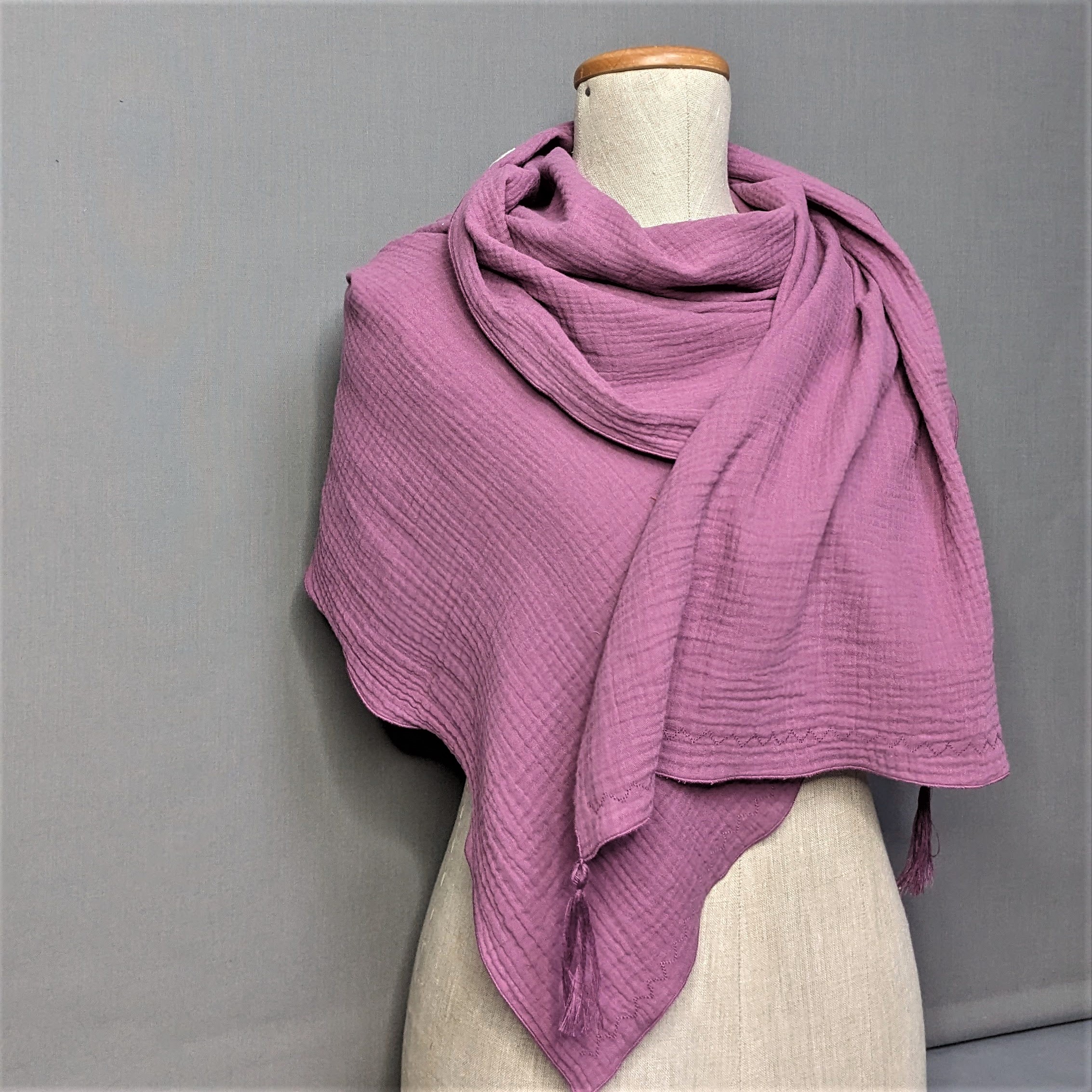 Szal  z naturalnego, mięciutkiego muślinu bawełnianego.