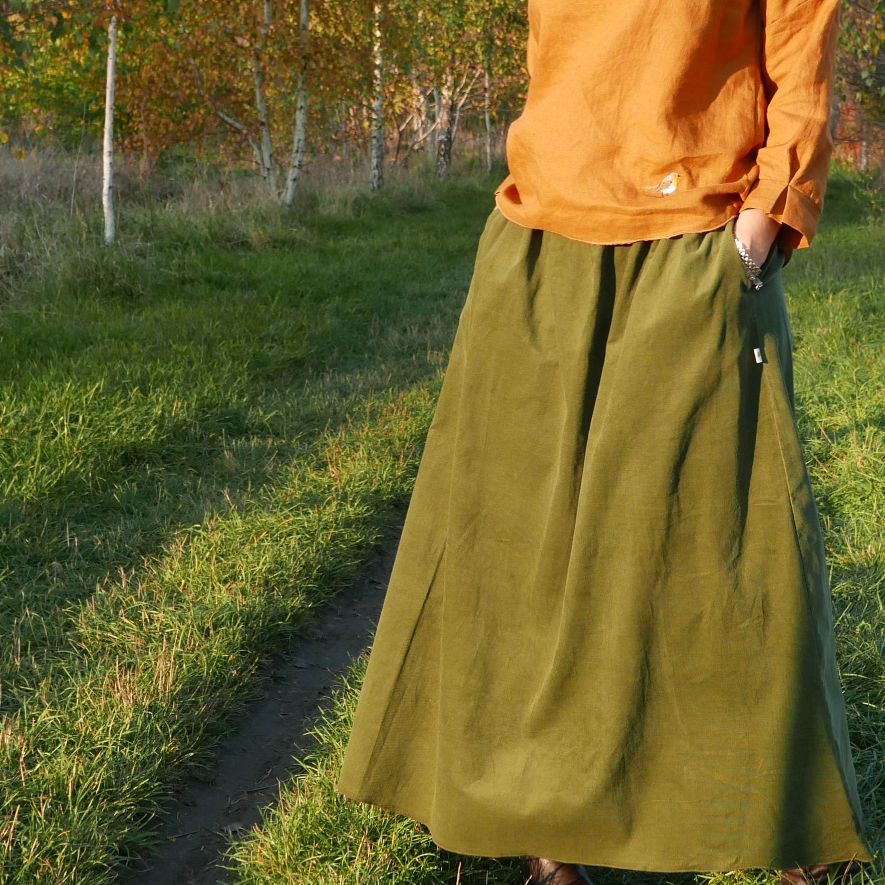 Mimo że długa do samej ziemi, jest niesamowicie lekka. Szyjemy ją z  bawełnianego sztruksu, który zachwyca miękkością i delikatnością. I jako naturalna tkanina jest przyjazna dla Twojej skóry.
